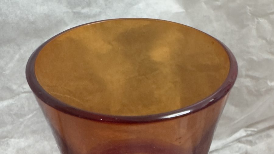5” high, pot-belly vase with flared neck, Uncatalogued Ruby variant